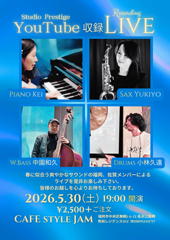 5/30(土)19時 CAFE style JAM YouTube収録ライブ✨